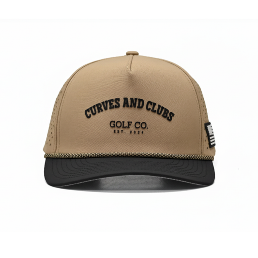 Curves and Clubs American Golf Hat – Tan Performance Rope Cap – Golf Co. Hat EST. 2024