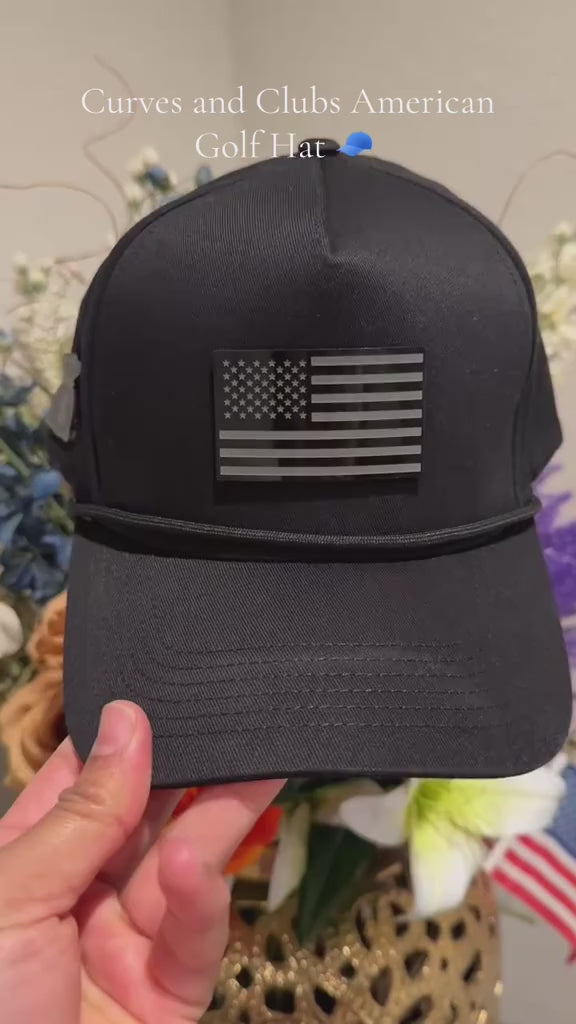 Curves and Clubs – Blackout Money Rope Hat | Stealth American Flag Golf Hat | Cool Golf Hat for Men | Patriotic Golf Accessories | Unique Golf Gifts | Breathable Snapback Cap