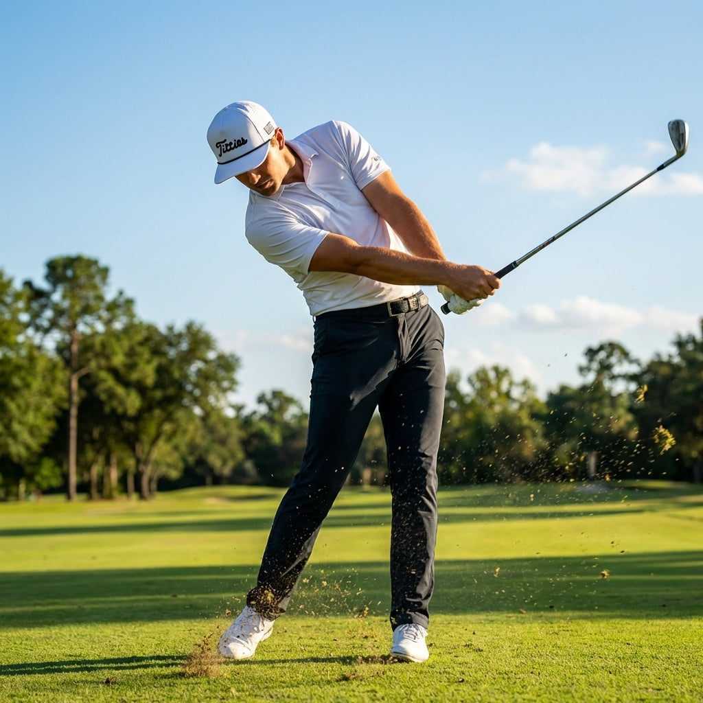 Designed for comfort, this hat features moisture-wicking polyester, perforated back panels for breathability, and a cotton sweatband to keep you cool and dry. Whether it’s a sunny day or a challenging round, this hat ensures you stay focused on your game without distractions.