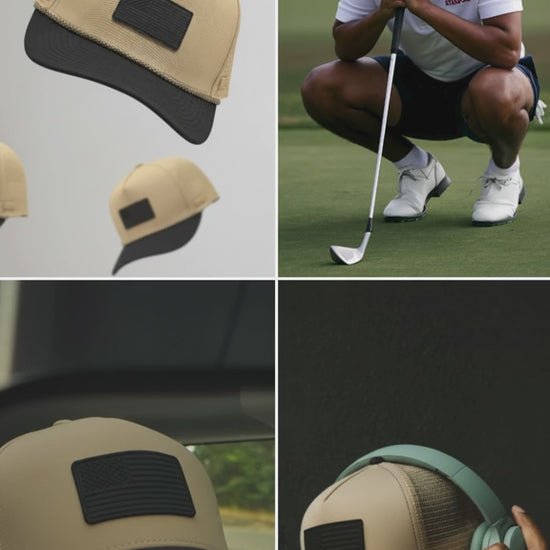 Curves & Clubs Golf Hat – Tan and Black USA Flag Patch