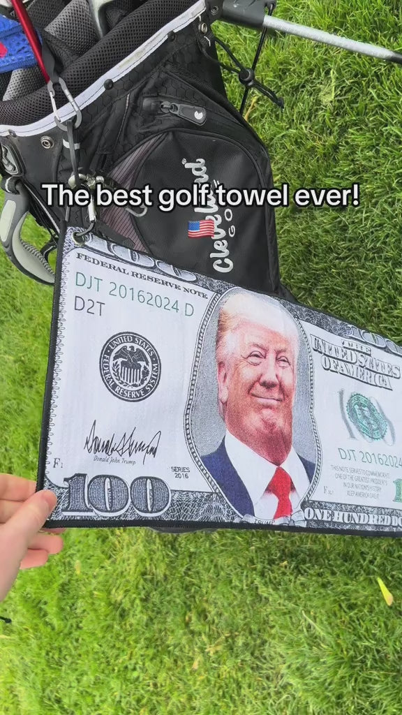 Trump Golf Towel- Microfiber Golf Towel - 10in x 20x in - Trump Gift - Trump Golf Gift - Trump Dollar Bill - Funny Golf Gift - Funny Golf Accessory - Golf Towel For Golf Bag